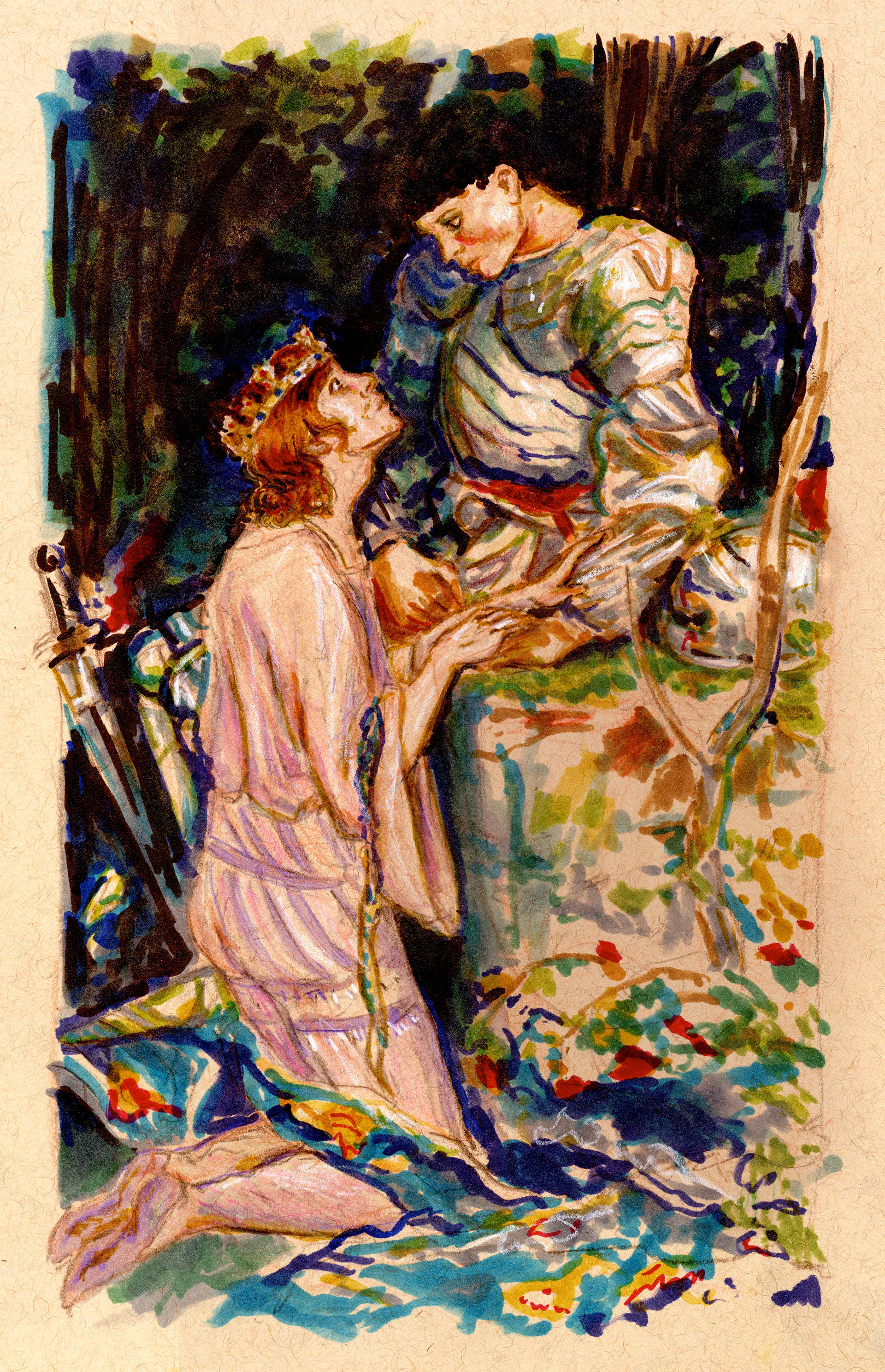 Redraw/study of the painting Lamia by J.W. Waterhouse